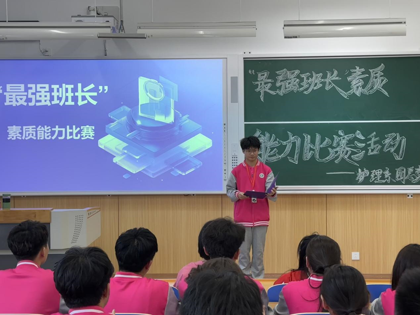 班长是班委的核心,是老师的得力助手。此次班长素质能力比赛活动的顺利举办,展示了班长们奋发进取、积极向上的精神风貌,加强了班长之间的交流,增强了大学生自我教育、自我管理、自我服务的意识,有助于进一步提升护理系班长队伍的整体综合能力水平。
