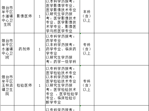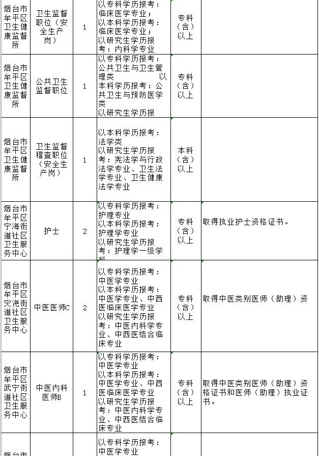 烟台市牟平区卫生类事业单位公开招聘工作人员