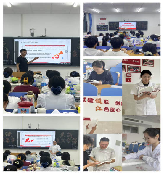 本次活动通过“烽火记忆·书香传承”主题阅读、“笔墨寄初心”主题征文以及“光影铸魂”红色观影三大板块,使学生深刻领悟抗战精神的深厚内涵,进一步激发他们的爱国热情。在“烽火记忆·书香传承”主题阅读板块中,系部精选了《论持久战》、《中国抗日战争全记录(1931-1945)》、《东京审判》等经典著作,构建红色书单,并通过读书分享会的形式,引导学子在字里行间感受历史的温度。与此同时,“笔墨寄初心”主题征文活动也同步展开,征集到原创作品百余篇,青年学子们以“青春视角”解读历史,用“时代笔触”抒发感悟,字里行间洋溢着“请党放心,强国有我”的坚定誓言。在“光影铸魂”红色观影板块,精选了《八佰》、《金陵十三钗》、《东京审判》等七部经典影片,打造沉浸式教育场景。23级护理2班创新性地开展了“观影+微党课”模式,组织影评沙龙,使历史认知在情感共鸣中得到深化。