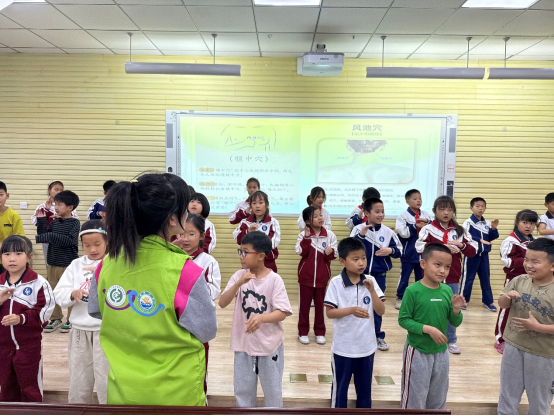 活动中,志愿者们用生动有趣的语言,向小学生们普及了中医养生理念和常见穴位知识,并结合《黄帝内经》中的“治未病”思想,讲解如何在日常生活中运用这些知识。为帮助孩子们更好地理解和掌握相关内容,团队还编排了融合中医穴位知识的舞蹈《健康到到令》,巧妙地将“膻中穴”“风池穴”等穴位的按压手法融入轻快的音乐和动作中,孩子们兴致勃勃地跟着节奏边跳边学,在欢乐的氛围中轻松掌握了简单的中医保健方法。