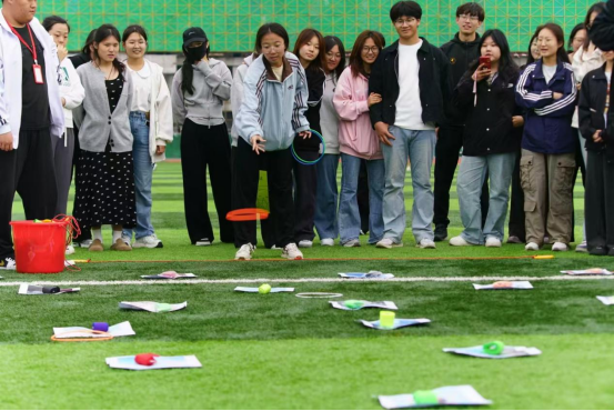 本次活动大约300人参加,活动内容丰富多样,包括“你划我猜”、“心理知识大比拼”、“传声筒”、“两人三足”和“套圈”等环节。 “你划我猜”通过肢体演绎,将抽象的心理调节技巧和护理专业术语转化为可视化的互动体验;“传声筒”以信息传递误差讲解沟通艺术;“两人三足”在跌跌撞撞中学会了彼此包容与鼓励;“套圈”活动现场摆满印有心理知识的卡片,同学们每成功套中一个目标,即可领取对应卡片与心理书签;“心理知识大比拼”则结合案例辩论与情景模拟,让学生在实践中掌握心理调节方法。活动以沉浸式设计打破传统教育模式,将心理健康知识融入多元互动形式,为心灵成长注入持续动能。