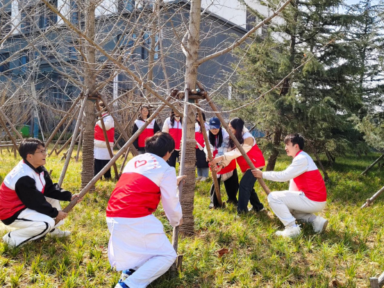 在植树节到来之际,护理系志愿者们积极行动,兵分两路。一部分志愿者在专业人员的指导下,参与到学校的植树活动中,大家分工合作,挖坑、扶树苗、填土、浇水,干劲十足,现场气氛活跃。另一部分志愿者则统一着装,手持垃圾袋,对四号实训楼附近的主干道、太极湖等区域进行细致清理,落叶、包装袋等垃圾被一一捡起,校园环境焕然一新。