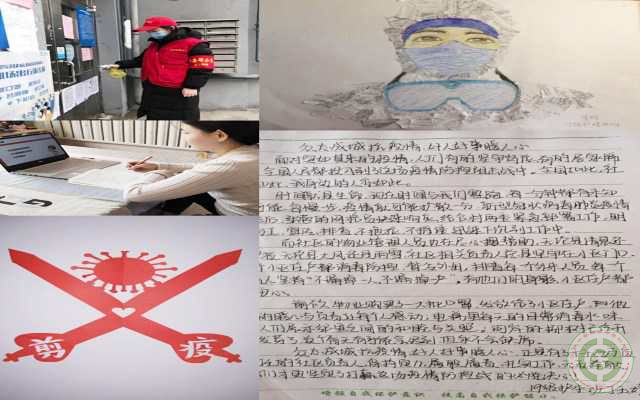 本次活动得到了同学们的积极响应,他们或用剪纸、剪贴画透过屏幕传递温暖,致敬最美防疫工作者;或用海报、征文等形式记录、讴歌疫情防控中的榜样;或深入社区,做疫情防控志愿者,为家乡的疫情防控工作贡献力量;或自觉居家隔离,认真上好网课,用自律的生活致敬战疫者的努力。