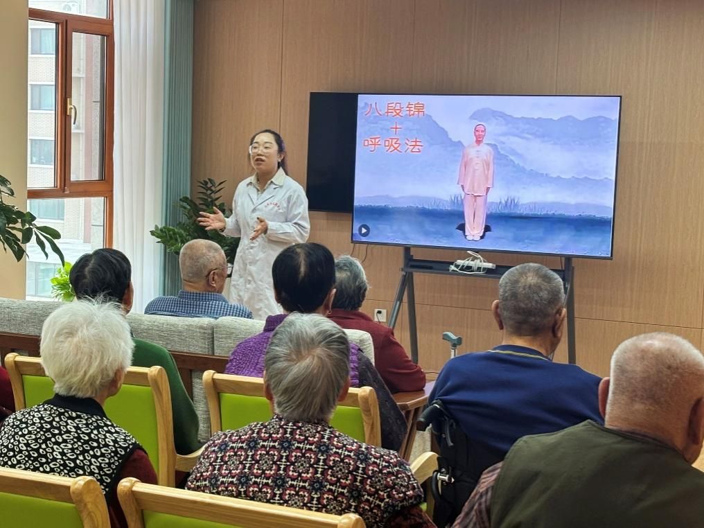 活动伊始,志愿者们用心布置现场,悬挂横幅、摆放中医药文化展板、发放养生宣传手册,营造出浓厚的中医药文化氛围。带队教师围绕“科学养生”主题开设健康讲堂,从饮食调理、穴位保健到“八段锦”锻炼方法,讲解深入浅出、互动热烈,老人们纷纷起身跟练,现场气氛温馨而热烈。
