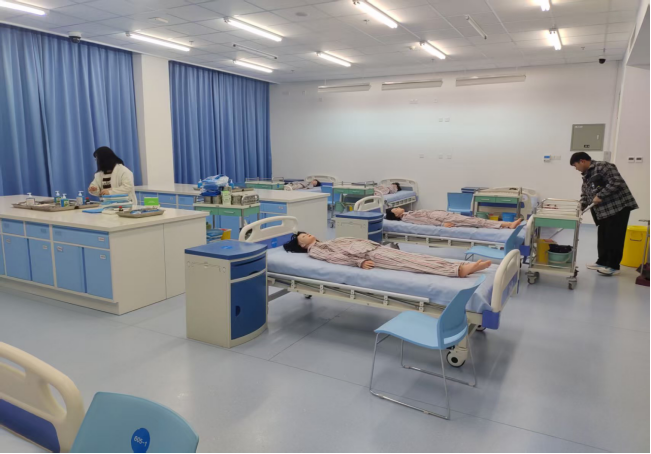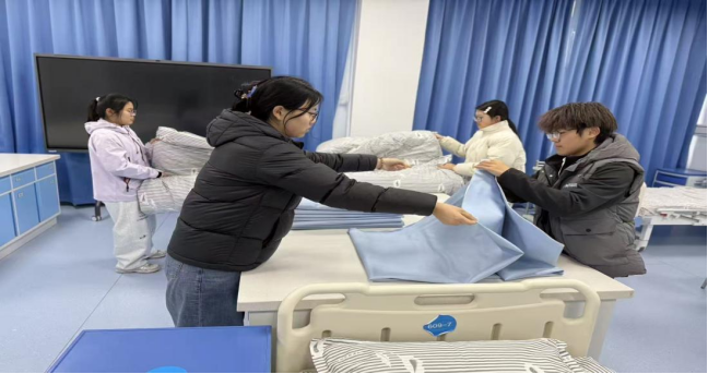 当天,在专业老师的带领下,志愿者们带着扫帚、拖把、抹布、消毒液等清洁工具,准时抵达实训室。大家分工协作,有的负责清扫地面杂物、整理实训桌椅,有的专注擦拭实训器械、操作台及门窗玻璃,有的对实训床、护理模型等专业设备进行细致擦拭和消毒,还有的整理实训耗材、归置实验用品,不放过任何一个卫生死角。