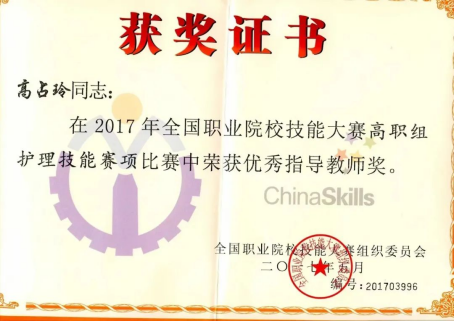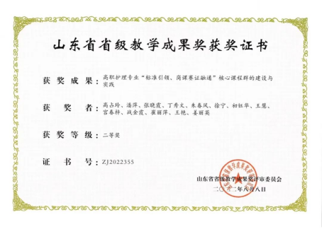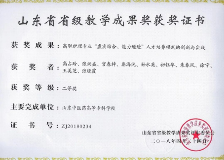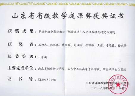 “护理专业中高职衔接‘螺旋递进’人才培养模式研究与实践”(第4位)获省级教学成果一等奖。