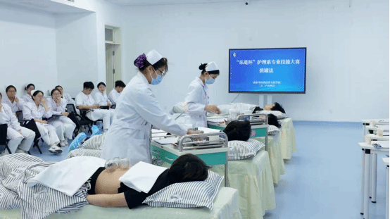 为传承弘扬中医护理文化,深化护理专业实践教学,护理系于4月25日在护理康养实验楼举办“乐道杯”专业技能大赛——拔罐法比赛。54名同学参赛并现场观摩,5位专业教师担任评委。