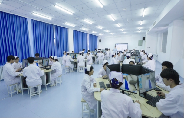 该实训室配备了120项虚拟仿真实训项目,涵盖基础护理、内外妇儿、急救及助产等专业领域,可模拟静脉输液、脐带脱垂、分娩机转、消化道出血等临床场景。