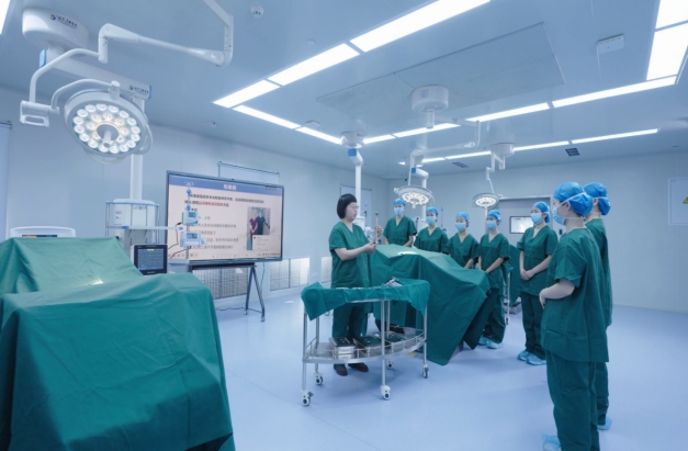 手术室模拟真实手术环境,配备了电动手术床、无影灯、麻醉机、监护仪等先进手术设备。