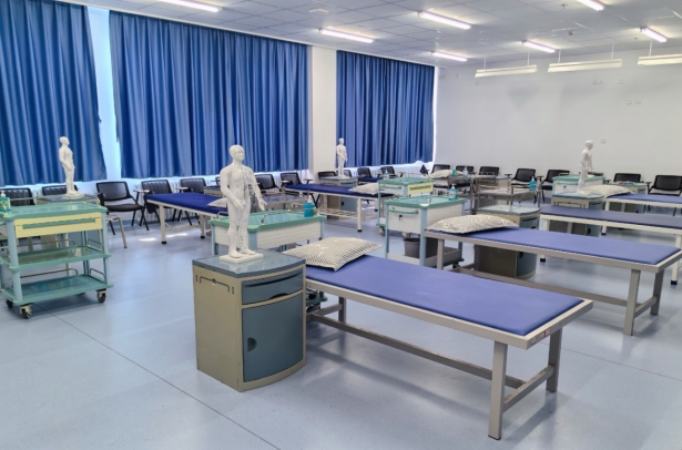 学生可在此学习并练习各类中医护理技能操作,例如耳穴压豆、隔姜灸、艾条灸、刮痧法、穴位按摩、拔罐法、中药熏洗法、中药外用法等重要操作技能。