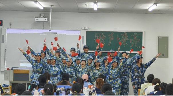 比赛现场气氛热烈,各班级学子以饱满的热忱、昂扬的姿态全情投入,为现场师生呈现了一场精彩的视听盛宴。有的班级凭借高度默契的配合,以铿锵有力的唱腔演绎《强军战歌》,歌声中满是热血与斗志,极具感染力,让在场观众深切感受到军人的坚毅品格;有的班级则巧妙融入真挚情感,将校歌悠扬的旋律与青春的蓬勃朝气相融合,用清澈的歌声传递对校园的热爱与眷恋,引发全场共鸣。经过激烈角逐,25级护理本科班队凭借铿锵嘹亮的歌声、细腻饱满的情感表达,搭配富有感染力的激情朗诵,生动传递出对校园的深厚情谊与青春担当,最终脱颖而出,斩获一等奖。